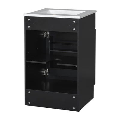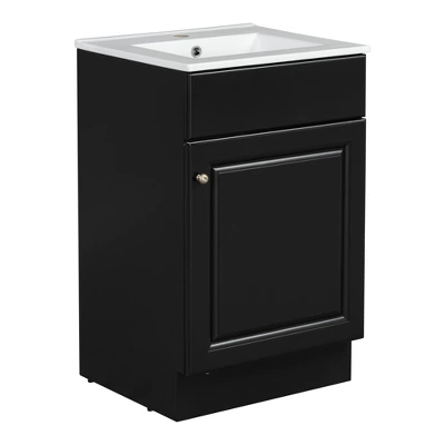 Upgrade your bathroom with our bathroom vanity, designed to combine style, durability, and functionality. Crafted from high-quality MDF with a sleek painted finish, this vanity is easy to clean and built to last. The solid ceramic sink resists water stains and features a pre-drilled hole for a single-hole faucet, with a chrome-finished overflow to prevent spills. With spacious storage, including a door shelf and adjustable interior shelf, this vanity keeps your bathroom essentials organized and within reach. The soft-closing door adds a touch of convenience and quiet operation, while the sturdy metal hardware ensures long-term use. Easy to assemble with all necessary parts included, it offers both practicality and elegance at an affordable price—perfect for transforming your bathroom today!