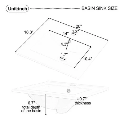 - 【Solid Ceramic Sink】The included ceramic sink is made from solid, high-quality material, resistant to stains and scratches, providing a long-lasting, water-resistant solution for your bathroom.