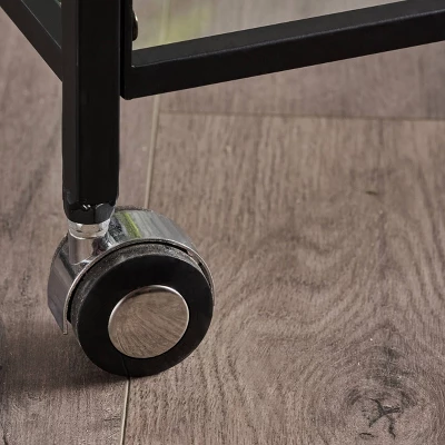 Crafted according to the highest standards from tempered glass and iron, this Christopher Knight Home Ambrose Industrial Bar Cart with Tempered Glass is the perfect accessory for all of your entertaining. With 2 shelves there is plenty of room for all your bar needs. Casters make this cart easy to move from room to room. With this Christopher Knight Home Ambrose Industrial Iron Bar Cart with Tempered Glass you are sure to be the envy of the town.