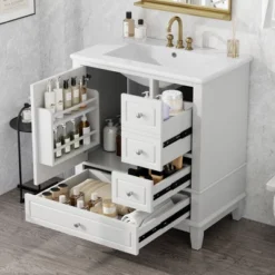 Christopher Knight Home Thomas 30″ Bathroom Vanity With Sink, One Door With Shelf And Three Drawers