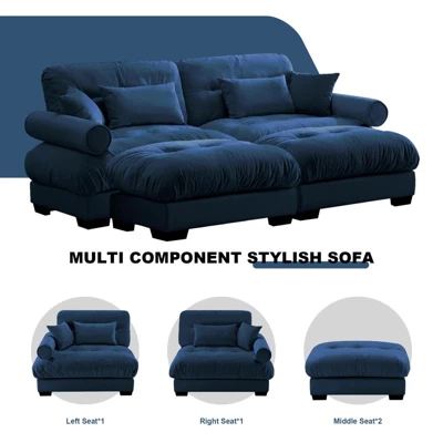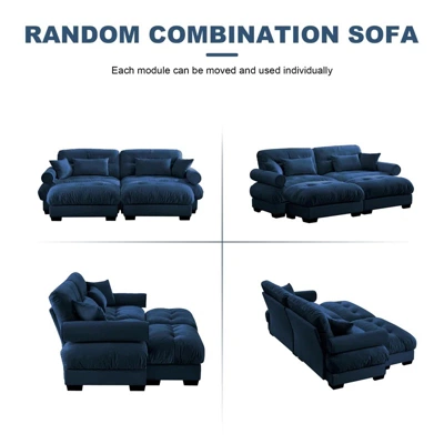 Elevate your living space with our exquisite modular velvet sofa, a perfect combination of style, comfort, and versatility. Crafted from durable, vintage velvet fabric, it offers a soft, luxurious seating experience year-round. The elegant bolster armrests provide both aesthetic appeal and functional support, cradling your hands or head in comfort. Designed with “cloud-like” cushions filled with high-resilience sponge and doll cotton, it delivers unmatched support and elasticity. Deep seats and included throw pillows ensure additional back and waist comfort, making it ideal for lounging, reading, or socializing. The modular design allows you to create the perfect layout for any room, offering unparalleled flexibility. Easy to assemble and transport, this sofa is a versatile addition to your home, combining timeless elegance with everyday functionality.