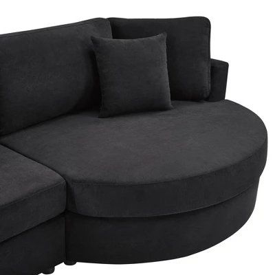 Blending modern elegance with cozy functionality, this curved sofa features a sculptural silhouette that softens any living space while promoting a more open and inviting atmosphere. Upholstered in soft chenille fabric, it delivers both warmth and durability, resisting daily wear with a plush, velvety feel. The thick 7.5-inch seat cushions offer lasting comfort and support, perfect for lounging or entertaining. Two matching throw pillows add a stylish finishing touch and extra lumbar comfort. Designed with thoughtful details, this sofa is a refined yet practical choice for contemporary or transitional living rooms.