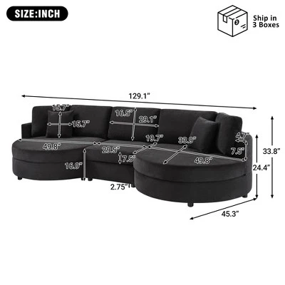 Dimensions: 45.30”D X 129.10”W X 33.80”H