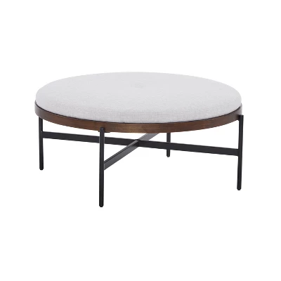 This stylish ottoman seamlessly blends modern aesthetics with practical functionality, making it an ideal centerpiece for your living room or lounge. Built with a strong black metal base and a durable manufactured wood frame, it delivers lasting strength and stability. The drum-shaped silhouette features a plush, foam-padded top that combines comfort with timeless elegance. Its spacious open base offers convenient storage for baskets, blankets, or other essentials, helping you maintain a clutter-free space. Measuring 36″ in diameter, this versatile piece doubles as a footrest, additional seating, or a chic coffee table with room for a decorative tray. A perfect fit for contemporary and modern spaces alike.