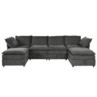 Experience the perfect blend of modern style and plush comfort with this cozy modular sectional. Upholstered in soft luxury chenille, it offers a chic and sophisticated look, ideal for relaxing, watching movies, or reading. This sectional is designed for versatility, allowing you to arrange its pieces and 2 included ottomans to create the perfect lounge setup that meets your specific needs.