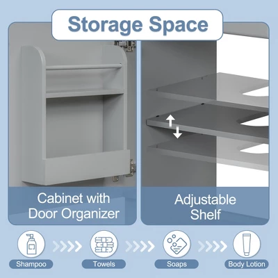 - STORAGE SPACE: Features a door shelf on the left and an adjustable shelf inside the cabinet. Organize small toiletries on the door shelf and larger items in the cabinet to keep everything neat and dust-free.