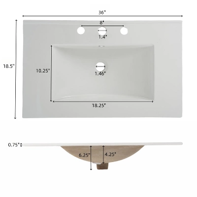 This bathroom vanity showcases a minimalist design with clean lines, a sleek silhouette, and modern hardware, creating a refined, contemporary look that blends style and function beautifully. It features versatile storage, including a tip-out tray for essentials, two drawers with adjustable dividers for organized toiletries, and a lower shelf ideal for towels or baskets. The integrated ceramic sink offers a smooth, durable, easy-to-clean surface that resists stains and scratches. Soft-close drawer slides ensure quiet, gentle operation, adding both convenience and a touch of luxury to your everyday routine.