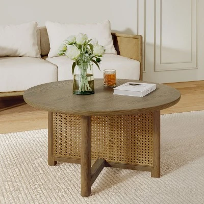 This farmhouse-style coffee table combines rustic charm with warm tones, natural textures, and timeless appeal, creating a cozy, welcoming atmosphere for any space. Expertly handwoven with durable PE rattan, it adds artisanal beauty and smooth, polished edges for comfort and safety. The sturdy 100% rubberwood frame provides exceptional durability, stability, and an authentic wood grain finish. Its versatile design fits seamlessly in living rooms, bedrooms, or offices, functioning as a coffee table, tea table, or accent piece, while its neutral tones complement a wide range of furniture styles and home décor themes.