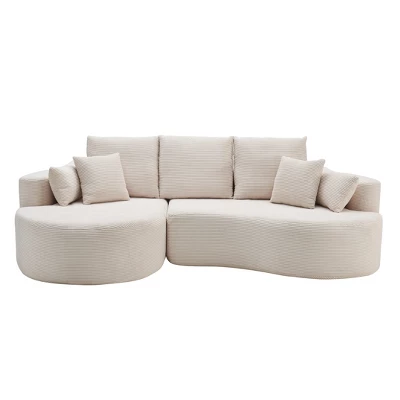The sectional sofa offers both style and comfort, making it the perfect centerpiece for your living room. Its sleek, curved design adds an elegant touch, while the soft upholstery provides a luxurious feel. The spacious 4-seater layout ensures ample seating for family and guests, promoting relaxation during social gatherings or quiet moments. Included are 7 plush pillows for added comfort and support. With its contemporary design and cozy appeal, this sectional sofa effortlessly combines modern style with ultimate relaxation.