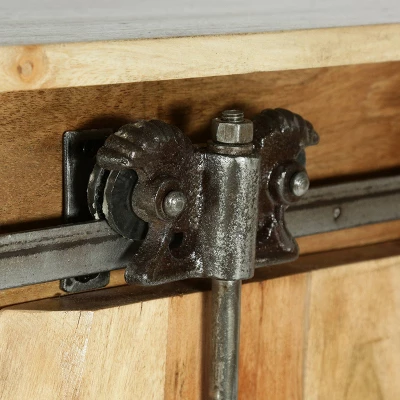 MODERN INDUSTRIAL: Our cabinet incorporates powder-coated iron accents with a beautiful acacia wood base to create an understated modern industrial design. Featuring a lovely live edge design and sliding door, this cabinet offers a chic aesthetic to any home.