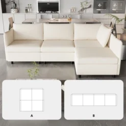 Christopher Knight Home Hars 126″ Modular Sectional Sofa With Double Layer Seat Cushions And Storage